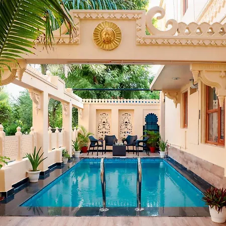 La villa Udaikot By Veo - Part Of Stayvista Udaipur, situada a 3 km del Lago Fateh Sagar, ofrece una terraza con vistas a la piscina. La villa cuenta con una piscina y se encuentra a unos 10 minutos en coche del Saheliyon Ki Bari.